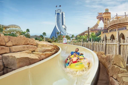 Der berühmteste Wasserpark in Dubai mit arabischem Thema, Wild Wadi Waterpark, bietet seinen Besuchern einen unvergesslichen Tag mit aufregenden Rutschen, familienfreundlichen Aktivitäten und dem ikonischen Burj Al Arab Blick. Mit über 30 Wasserrutschen, Wellenpools und Freizeitbereichen bietet er sowohl Kindern als auch Erwachsenen ein einzigartiges Erlebnis.