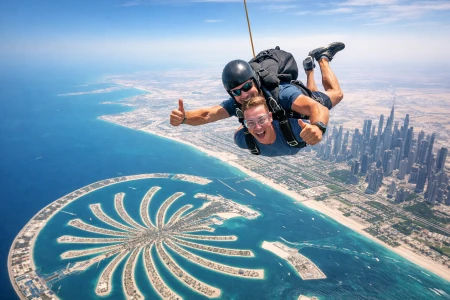 World-famous Skydive Dubai offers an unforgettable experience for adrenaline enthusiasts, especially with its unique location over Palm Jumeirah. During the tandem jump conducted with professional and experienced instructors, you will be able to see Dubai's modern skyscrapers, the stunning coastline, and the iconic structure of Palm Jumeirah in all its glory from the sky.